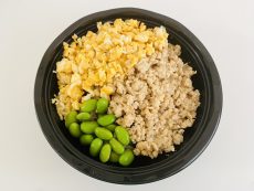 豚ひき肉、玉ねぎ、ニンニク、生姜、フリルレタス、水菜、ソース、ケチャップ、コンソメ、クミン、カレー粉、油、チーズ、マヨネーズ、雑穀米